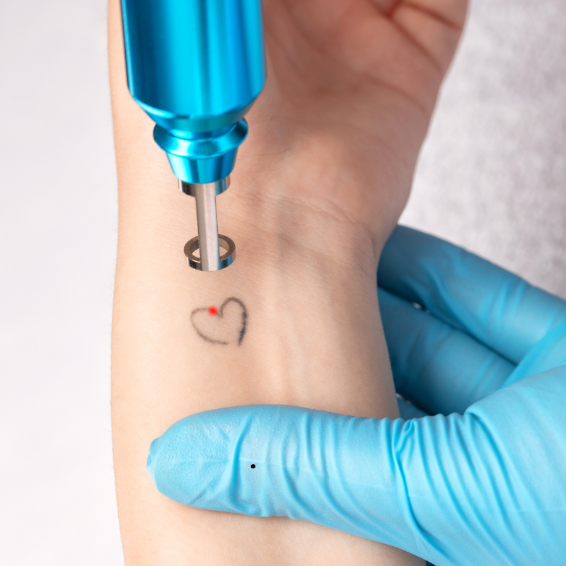 We use FDA-approved laser systems to safely break down ink pigments, even for stubborn or multi-colored tattoos